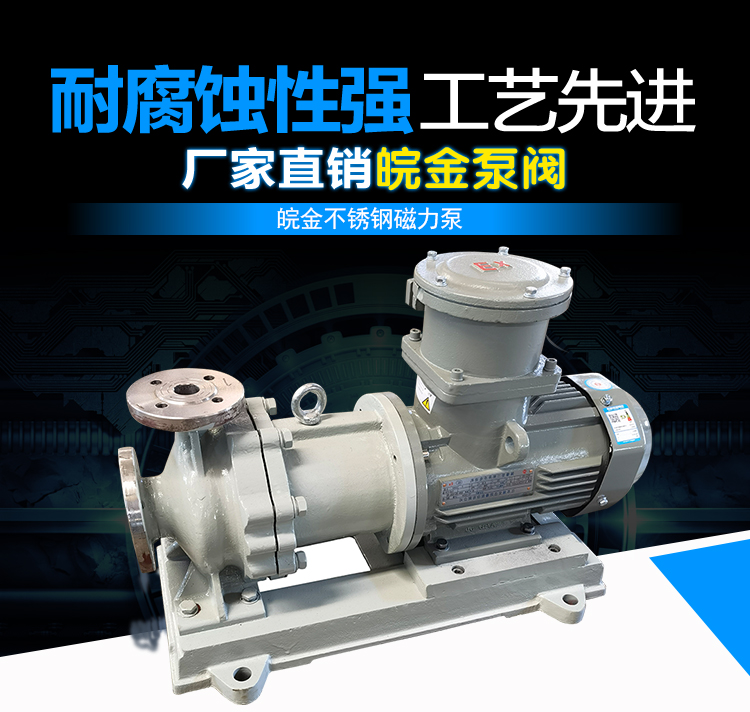 WJC不銹鋼磁力泵過流部件采用全不銹鋼材料(304、316、316L),內、外磁轉子選用高磁能積、高矯頑力的稀土永磁制造,具有高效節能、介質適用面廣、耐高溫、磁性強、不退磁等優點,對有機酸,有機化合物,堿,中性溶液和各種氣體都有良好的耐蝕性,雙螺旋糟碳石墨軸承和硬質合金軸套,具有較強的耐磨性,是應用磁力耦合實現無接觸傳動、無動密封的新型高品質磁力化工泵。保證了產品的壽命,是無泄漏輸送腐蝕性介質的理想用泵。