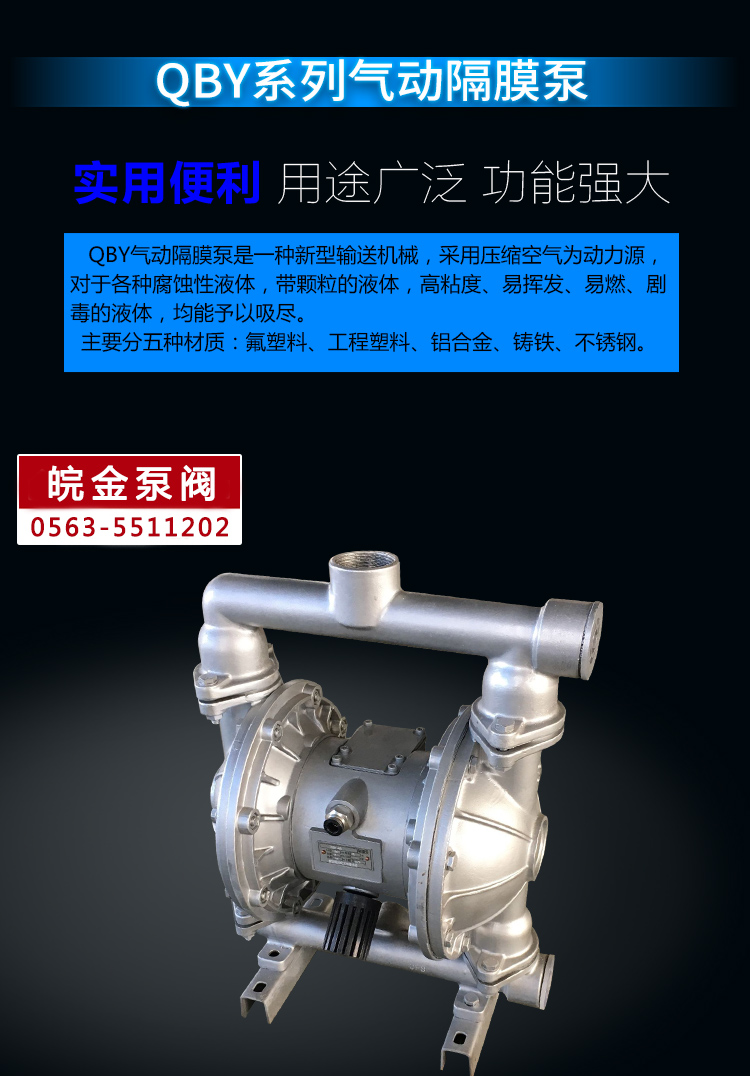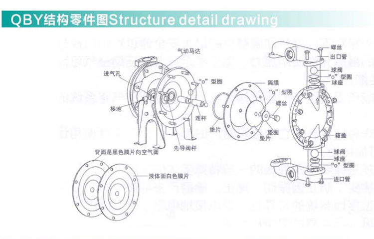 QBY氣動隔膜泵既能抽送流動的液體,又能輸送一些不易流動的介質,具有自吸泵、潛水泵、屏蔽泵、泥漿泵和雜質泵等輸送機械的許多優(yōu)點。