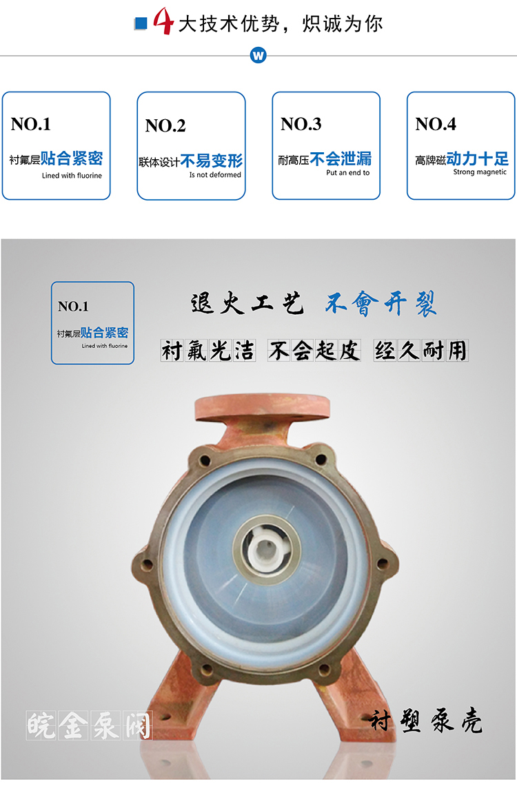 氟塑料磁力泵又稱其為氟塑料磁力離心泵、氟塑料磁力驅動泵、耐腐蝕磁力化工泵,CQB-FT襯塑磁力泵是我公司氟塑料磁力泵中的全新升級款型。